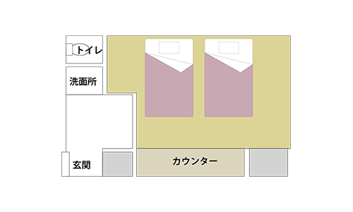 和室の雰囲気をそのままに、ベッドでおくつろぎいただけるお部屋。「旅館の趣を味わいたいけれどベッドで過ごしたい」そんな方におすすめです。ツインベッドは、普段と同じようにベッドで寝たい方や、足腰の痛い方におすすめです。アウトバスで、洗面台とトイレに広いスペースをとっております。大浴場にすぐ近くのお部屋です。 和室10畳・ベッドタイプ:ツインベッド・洗面所・ウォシュレット付トイレ アウトバス